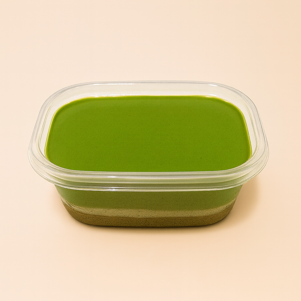 Ingredients: Butter crisp, cheese, cream, chocolate crispy pearls, white chocolate, matcha powder, eggs, flour, vegetable oil, sugar, water, cornstarch, butter.
